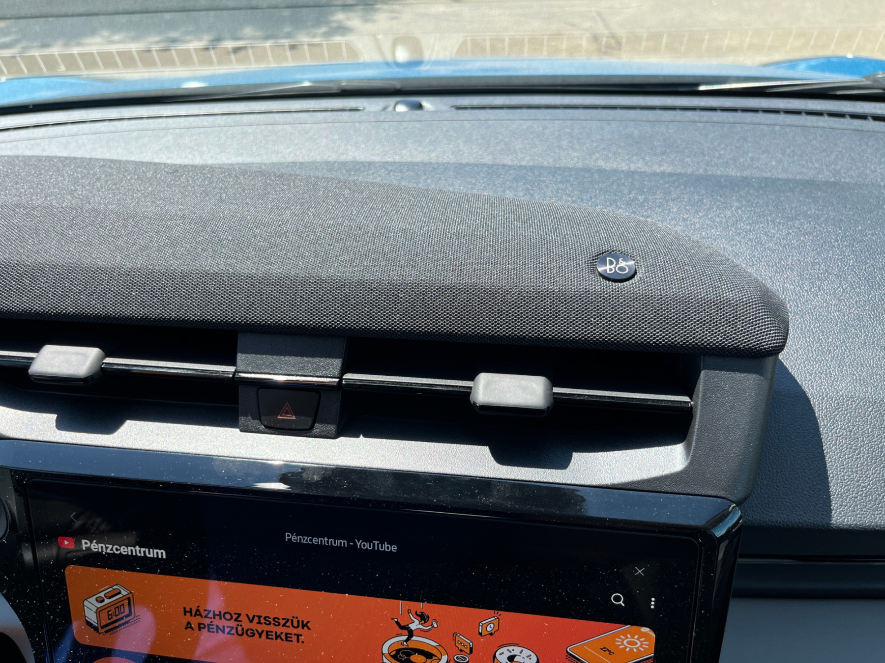 Az anyaghasználat hozza az iparági átlagot, néhol a prémium irányába is elmozdul: a fontosabb pontokon kellemes tapintású műanyagokkal találkozunk, az információs kijelző 12,8 colos képátlóval, a központi érintőképernyő pedig 12 colos méretével és kiváló felbontásával emeli a beltér színvonalát. A műszerfal tetején végigfutó BO hangrendszer hangszórósávja nemcsak jól szól, de stílusos, nappali hangulatot is kölcsönöz az utastérnek.
