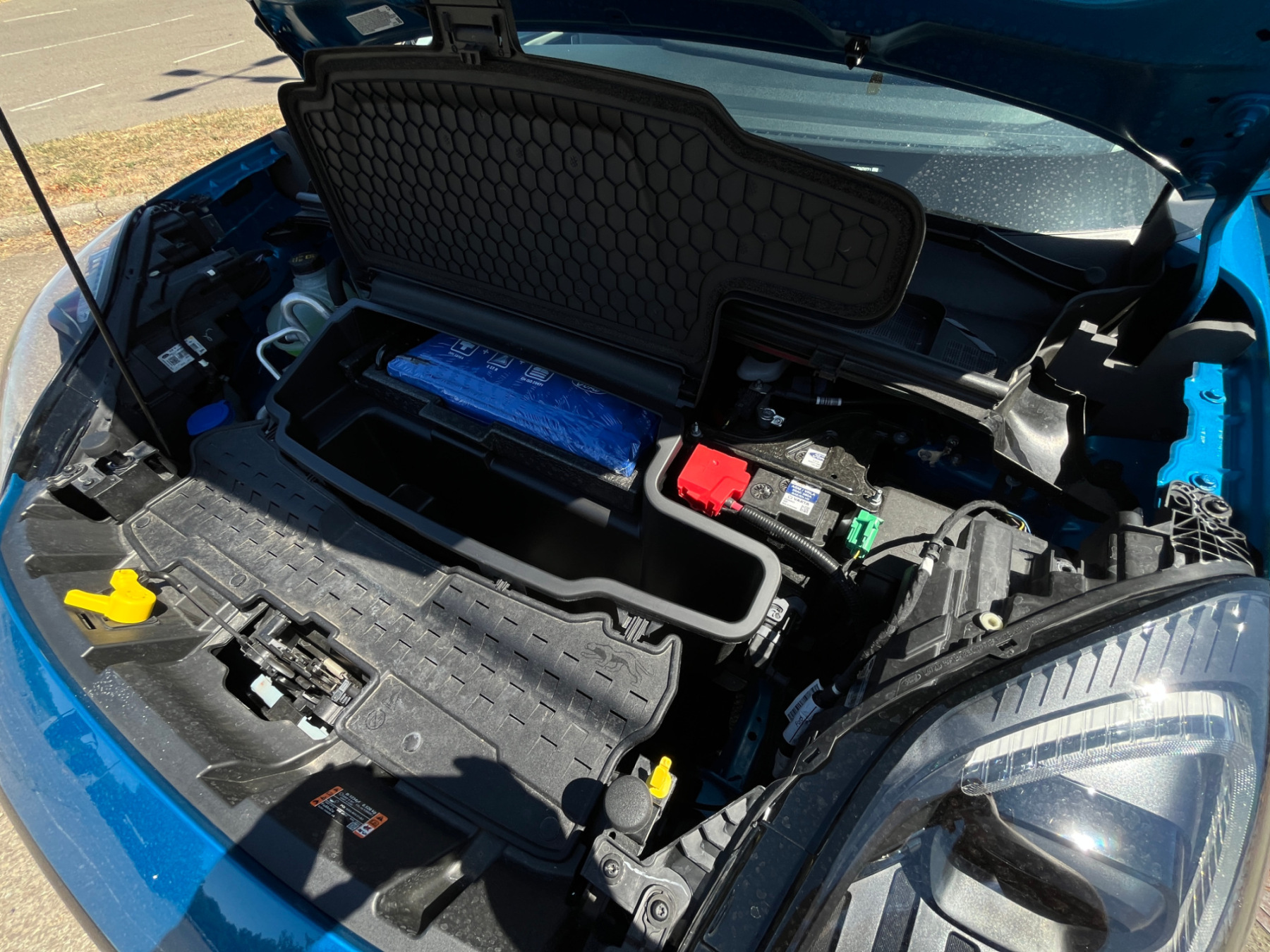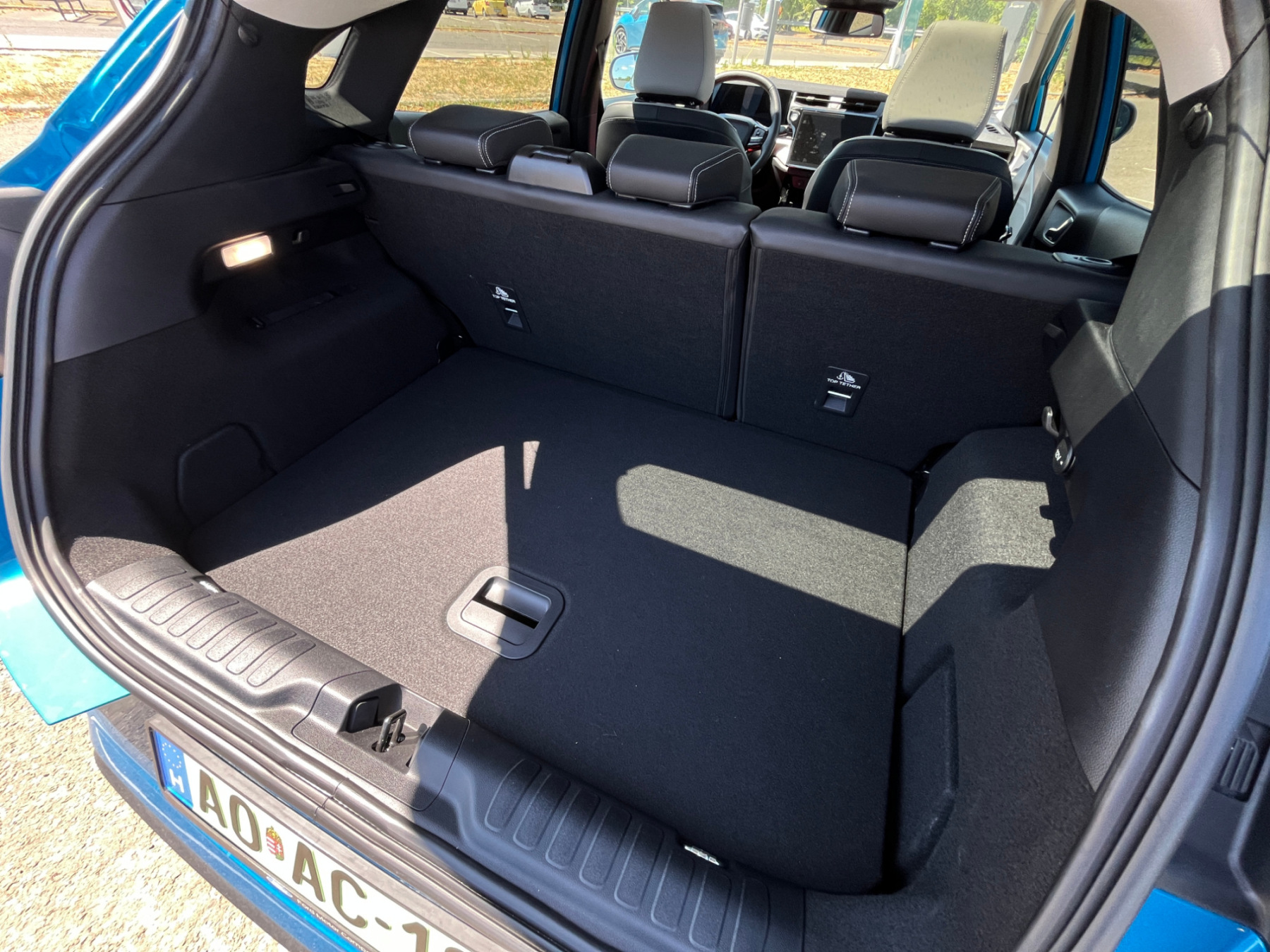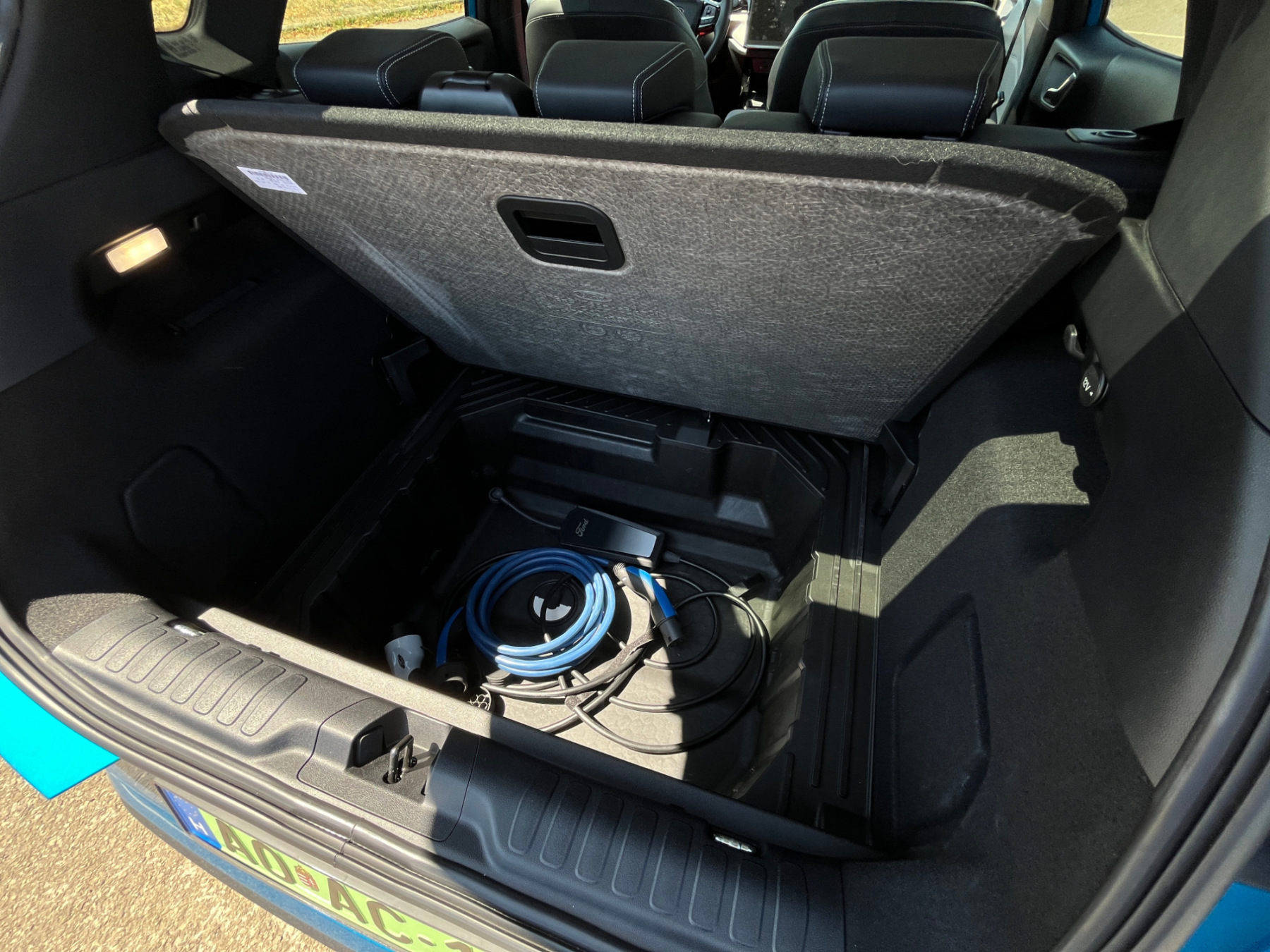 Az autó a méretéhez képest meglepően tágas csomagteret kínál: 523 literes raktérrel rendelkezik (a padló alatt is van egy óriási doboz), amelyet ráadásul a töltőkábel sem csökkent, mivel az egy külön első tárolórekeszbe kerül. Ez a 43 literes, vízálló, mindig tiszta belsővel rendelkező elülső csomagtartó nemcsak a kábeleknek, hanem a KRESZ által előírt felszereléseknek is ideális hely. A magasabb felszereltségű, Premium változat elektromosan nyitható és zárható csomagtérajtóval érkezik.