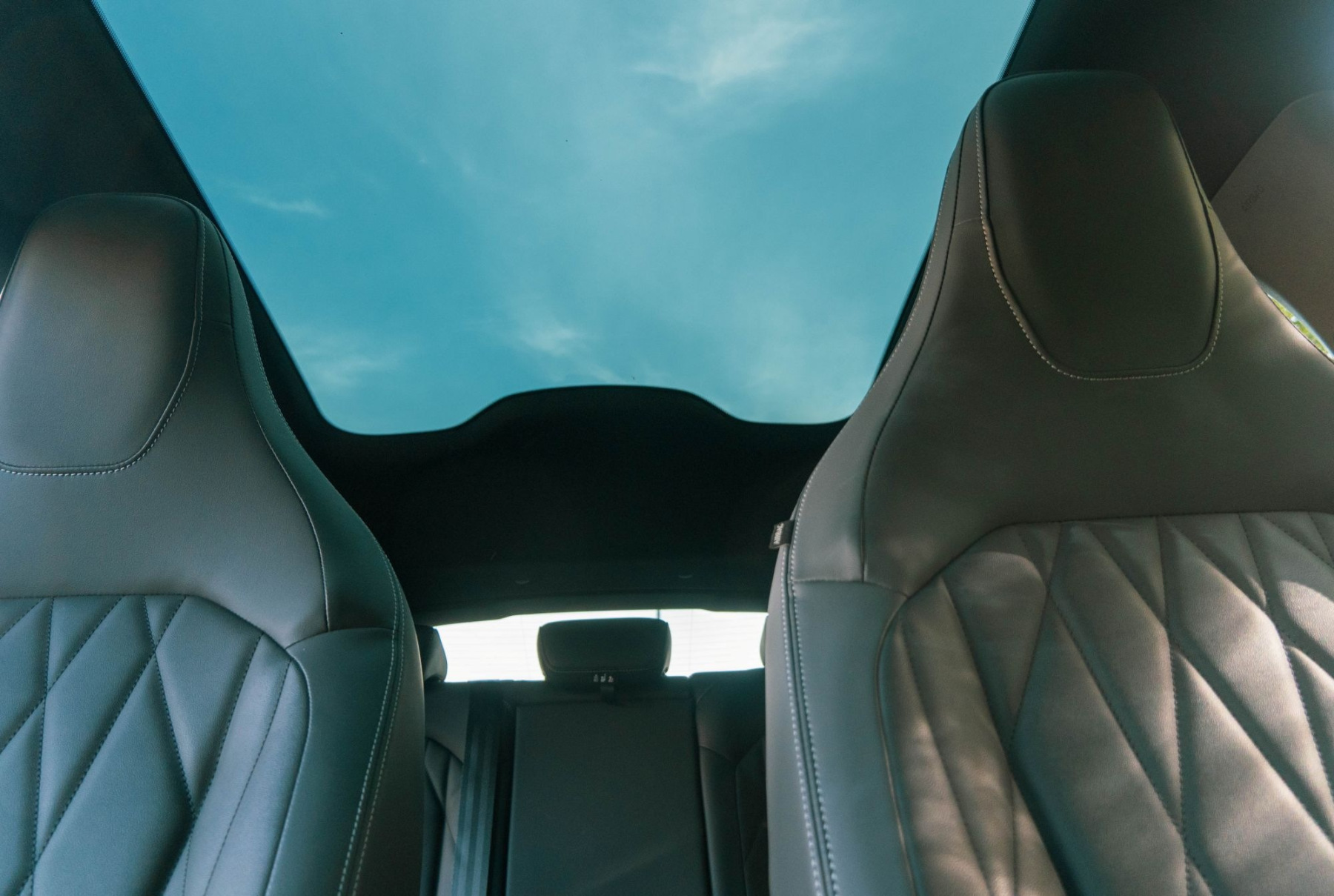 A hátsó üléssorban a magasra emelt térdek miatt az üléshelyzet nem a legideálisabb, ugyanakkor a fej- és lábtér még 190 centiméteres magasság mellett is bőséges, bár a kupés kialakítás miatt a tető íve korán kezd lejteni. A hátsó utasok saját szellőzőnyílást és egy pár USB-töltőpontot is kapnak.