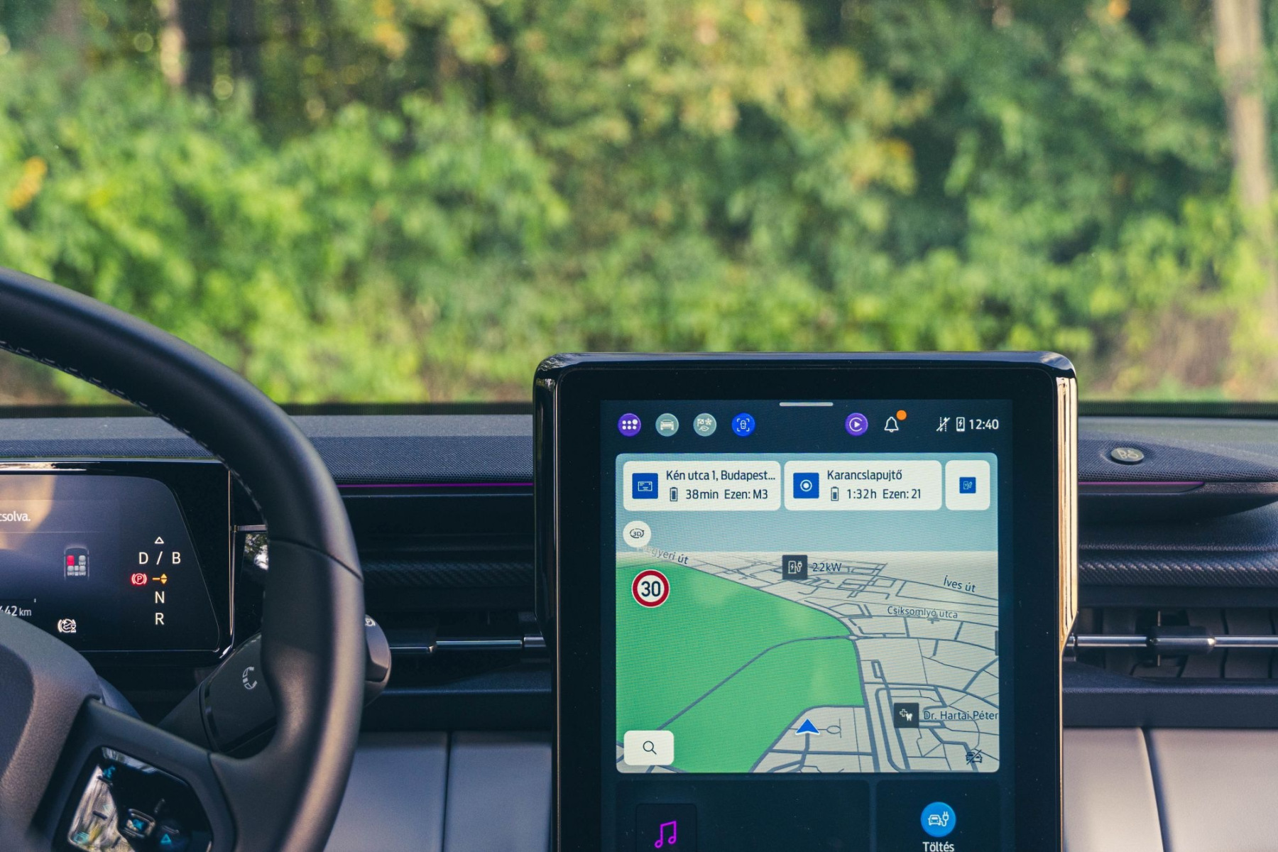 Mint fentebb írtam, szinte minden funkció a 14,6 colos nagykijelzőn állítható, ennek legnagyobb előnye, hogy egy állított téglalap, nem hagyományos fektetett. A nagy trükk pedig az, hogy a kijelző dőlésszöge állítható - és egy tárolórekeszt is rejt maga mögött UDB-csatlakozókkal. Külön piros pont, hogy a kijelzőn a legtöbb beállítás akkor is elérhető, ha Android Auto vagy Apple CarPlay fut, nem kell kilépegetni, keresgélni. A középkonzolon USB-csatlakozók, vezeték nélküli töltőfelület, pohártartó, valamint egy 17 literes, tetszés szerint átrendezhető, nagy rekesz található, amely könnyedén elnyeli a kisebb-nagyobb tárgyakat.