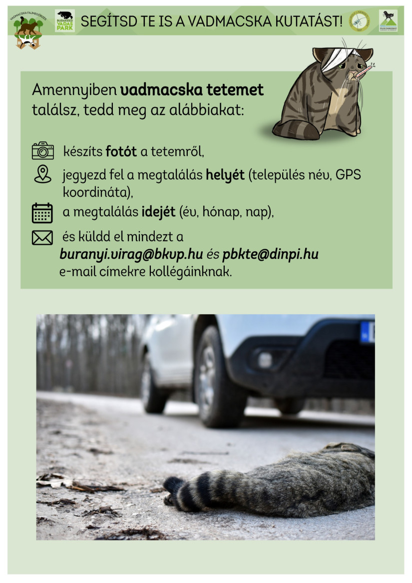 A Budakeszi Vadaspark a lakosság segítségét kéri a szerelemtől fűtött vadmacskák védelme érdekében. A vadmacskák párválasztási időszaka februártól márciusig tart, ebben az időszakban az állatok nagyobb területeket járnak be és gyakrabban haladnak át főútvonalakon, ami gázoláshoz vezethet. Kérjük, hogy a közlekedők körültekintően vezessenek, illetve, ha gázolt egyedeket észlelnek a Pilis Parkerdő és a Duna-Ipoly Nemzeti Park Igazgatóság működési területén, jelezzék a Vadaspark és a természetvédelmi őrszolgálat felé az esetet.