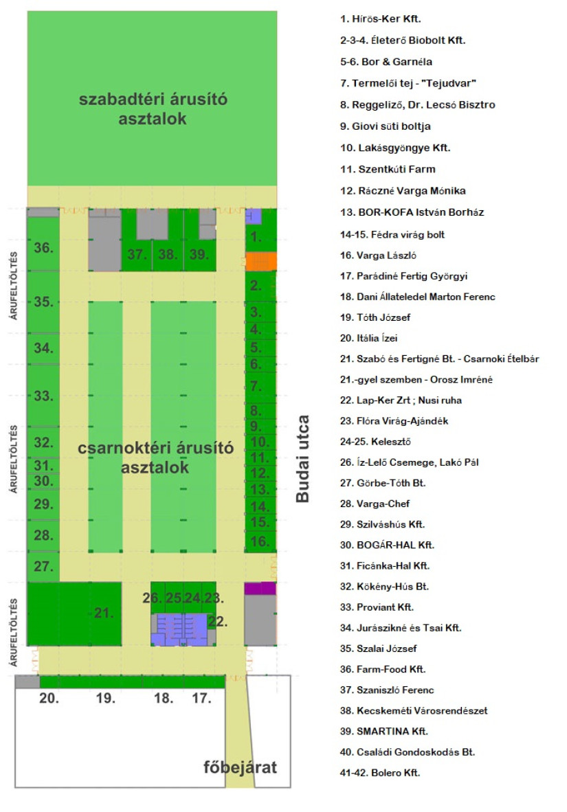 A Budai utca 2/A címen található piaccsarnok beosztása: