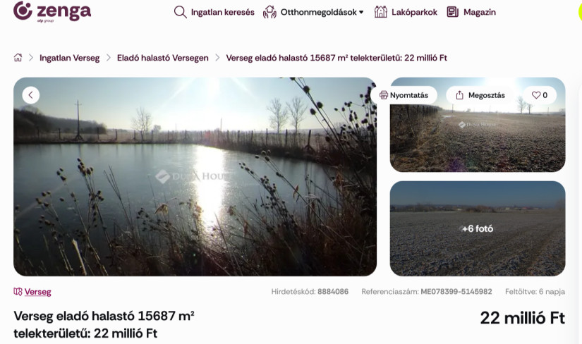 Miközben a hazai ingatlanpiacon az utóbbi hónapokban szinte mindennapi hír lett az üzletek, éttermek, irodák és szolgáltatóhelyek eladása is, egy másik tendencia alig kap nyilvános figyelmet: szinte minden megyében tucatjával hirdetnek eladó horgász- és halastavakat is – Kecskeméttől Békésig, Fejértől Tolnáig. Nem egyhez apartman, vendégház vagy lakóháznak alkalmas családi ház is tartozik.