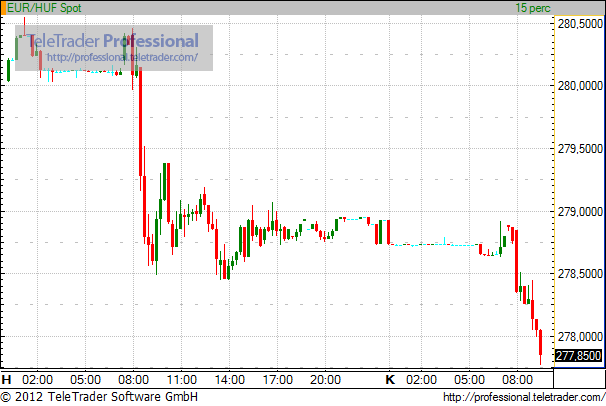 Az európai részvénypiacok lendületes nyitásával párhuzamosan a forint is folytatta erősödését. Az euróval szembeni jegyzések a 278-as szint alá süllyedtek, jelenleg a 277,90-es szint körül ingadozik a kurzus.