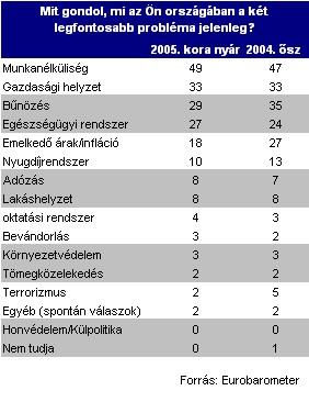 Külön érdemes kitérni a tagsággal kapcsolatos leggyakoribb félelmekre (említés gyakorisága). Ezek között az EU 25 szintjén a megkérdezetteknek (29 ezer fő) pontosan a fele a munkanélküliséget jelölte meg, míg a második helyre a gazdasági helyzet került (27%).