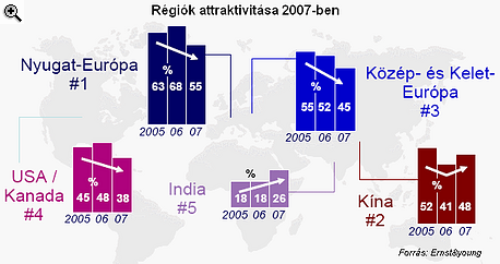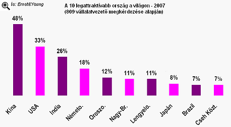 Kína és India térnyerése egyébként igen látványos. Az Ernst&Young felmérése szerint a világ legnépesebb országa attraktivitás tekintetében az idén letaszította a trónról az Egyesült Államokat, India pedig Németországot lökte le a dobogóról. Figyelemre méltó, hogy a top 10 tagja a régióból Lengyelország és a hozzánk hasonló méretű Csehország is