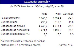 Május-júliusban 3 millió 894 ezer fő volt foglalkoztatott Magyarországon, miközben a munkanélküliek száma minimálisan 316 ezer főre csökkent. A 15-74 éves korosztályban a népesség 54.6%-a jelent meg a munkaerőpiacon (aktivitási arány), ami (szezonális okok miatt) tavaly ősz óta a legmagasabb.