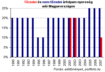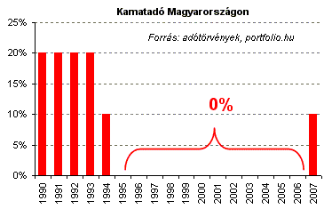 1. 2007-től a kamat- és árfolyamnyereségből származó jövedelmek 50 ezer Ft-ig adómentesek lesznek, e fölött 10%-os forrásadót kell majd fizetniük a magánszemélyeknek. A VG információi szerint a 10%-os kulcs 2010-től 18%-ra emelkedne.