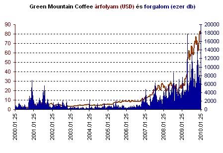 Jó hírek, rossz hírek, egy jó bögre kávé mindig kellemes társ az emlékezetes napokon. A nehéz idők sem tántorítják el a befektetőket a jó kávétól - jósolta 2001-ben a Green Mountain Coffee Roasters vezérigazgatója, Robert Stiller. Igazát mi sem bizonyítja jobban, mint hogy a 2000-es évben egy dolláron forgó részvény mára 70 dollár feletti értéken jár. Igaz, az első hét évben szinte semmi nem történt, aztán a Keurig felvásárlása után meredek emelkedésnek indult a részvény értéke, a társaság pénzügyi és forgalmi adataival párhuzamosan.