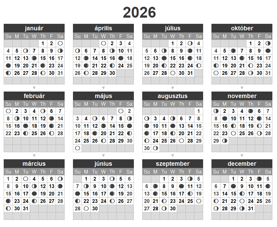 2026 telihold naptár: