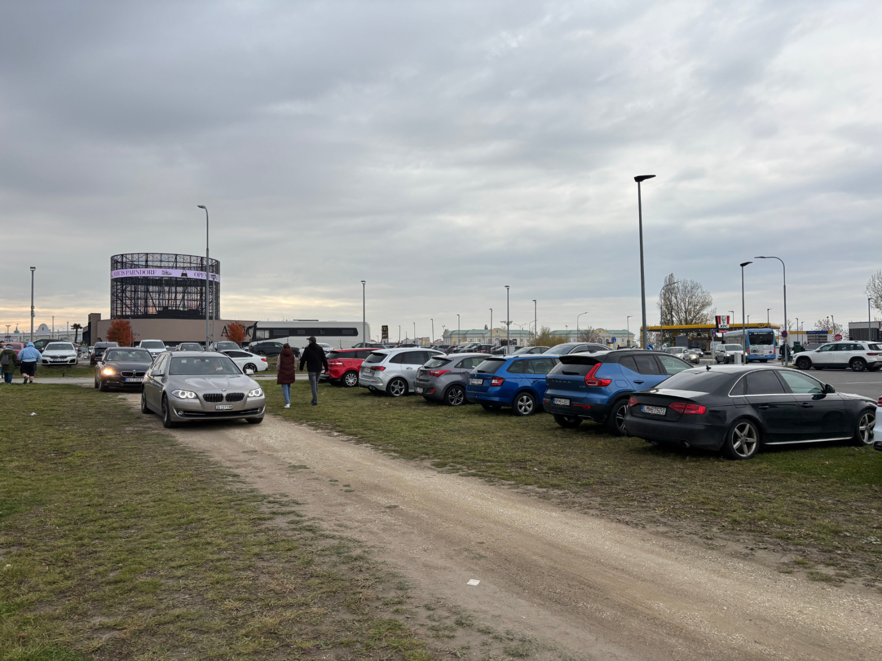 Rendeben, az út legjava letudva, számolva az M1-esen uralkodó állapotokkal, igyekeztünk úgy indulni, hogy nagyjából az outlet nyitására, 9 órára odaérjünk - ez többé-kevésbé sikerült, mondjunk inkább 10 körült az érkezésnek... Ott viszont már a bevezető úton integettek az amúgy magyar biztonsági őrök, hogy az outlet hivatalos parkolója megtelt, úgyhogy a mezőn (!!) tegyük le az autót.