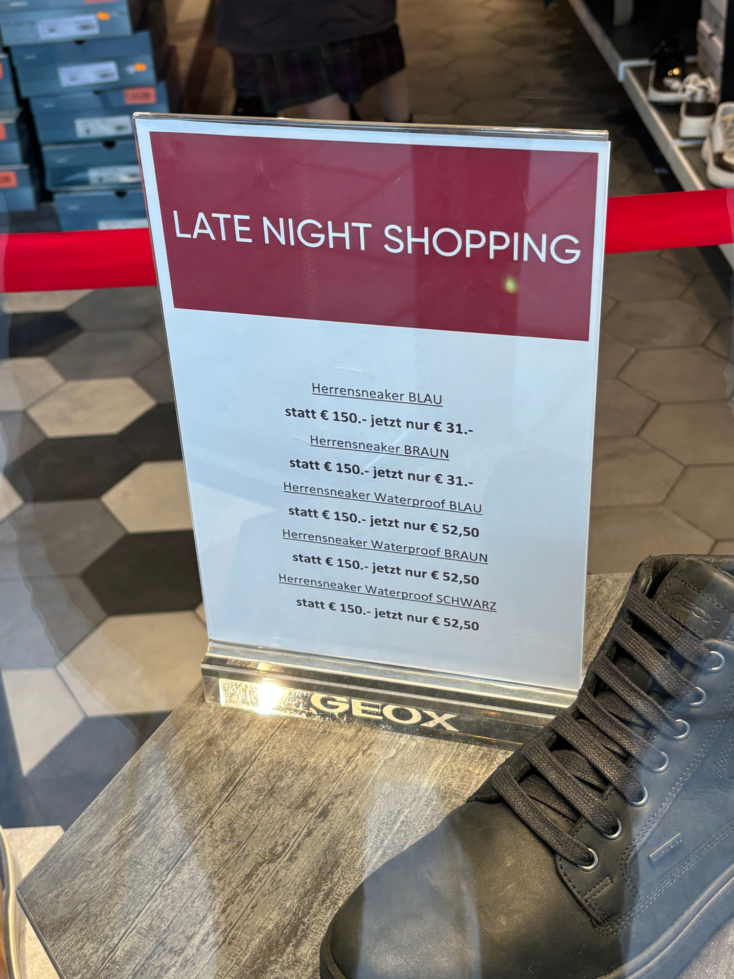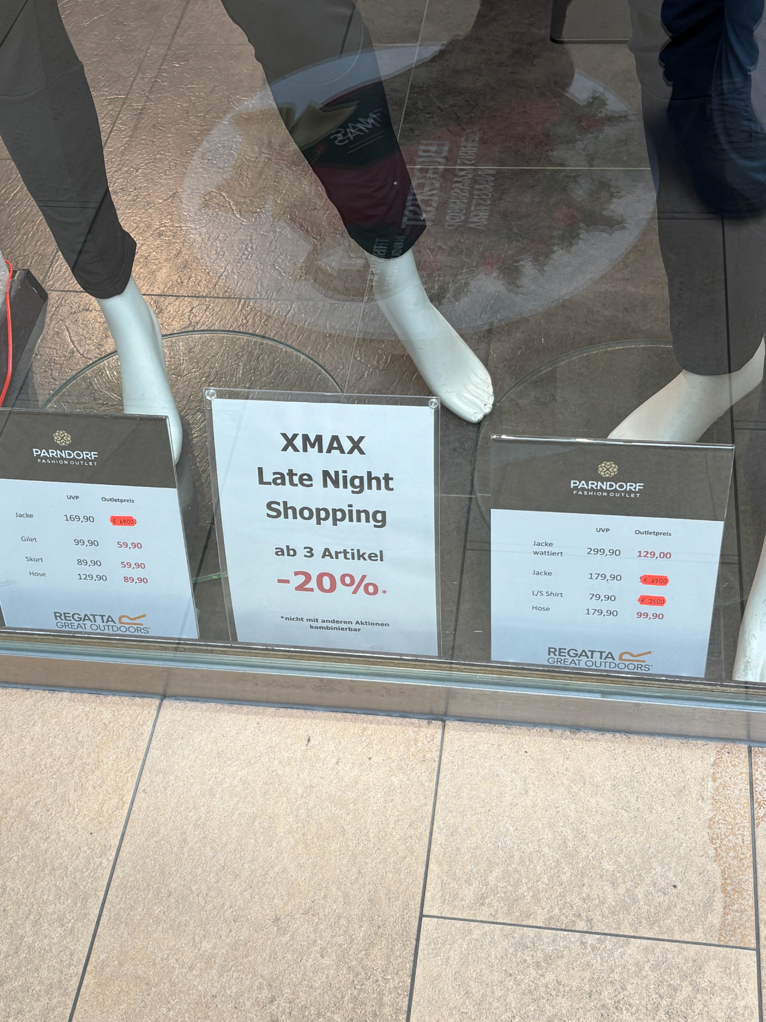 A klasszikus, brutális outlet-akciók igen limitáltak: láttam például a Karl Lagerfeldben kabátot 1300 euróról 150-re leértékelve, kettő volt belőle, S-es. A Retro üzletben is volt tetszetős kabát 250 helyett 30 euróért, de szintén csak kis méretben volt elérhető - három darab. A cipőknél ugyanez, a Nike leértékelt polcain a legnagyobb akciók a 47-től felfelé méretű termékekre voltak. Ha valakinek ilyen méretek kellenek, érdemes benézni.