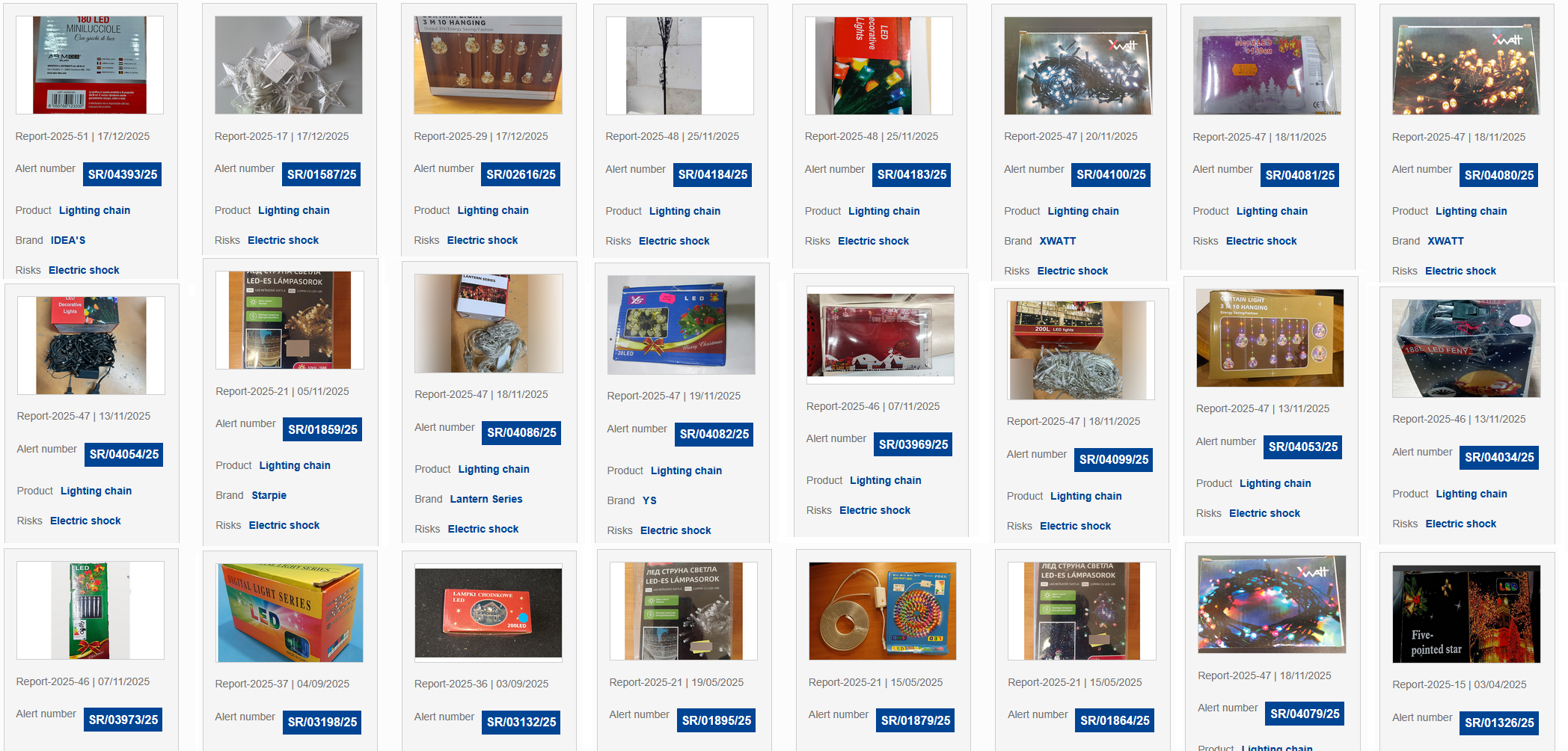 Ahogy írtuk, az EU-s fekete listán számos más termék is van, amit könnyedén meg lehet rendelni online, viszont mindenféle veszélyt tartogathat. Ha tehát olyasmit rendeltünk külföldről idén karácsonyra - akár ajándékként, akár dekoráció gyanánt -, ami nem biztos, hogy megfelelően ellenőrzött, akkor csekkoljuk le a Safety Gate listán. A keresőben próbálhatunk gyártóra keresni, vagy a termék típusa alapján böngészhetjük a kategóriát. Érdemes nem csak a 2025-ös bejelentések között keresgélni, hiszen bőven akadhat olyan árucikk, amit évekkel ezelőtt bejelentettek veszélyes terméknek, de online még mindig kapható.