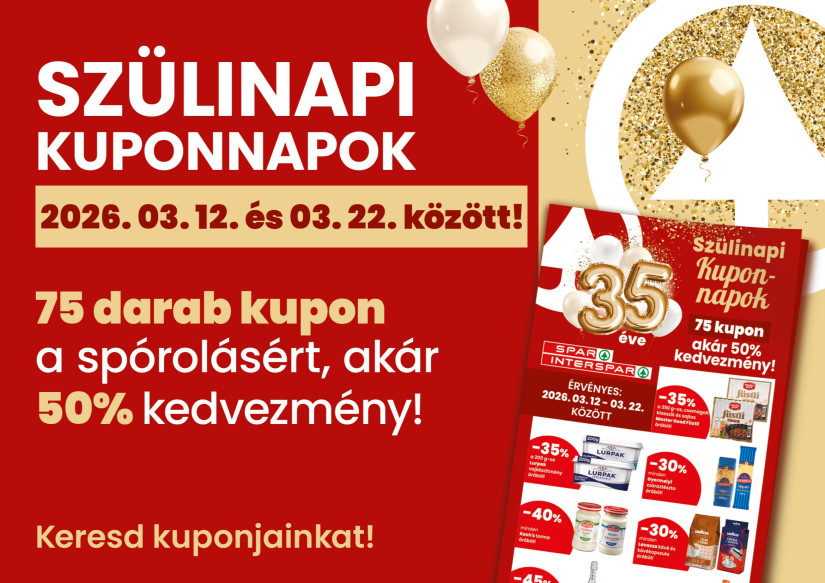 Új akcióval köszönti a tavaszt a SPAR országszerte. 2026. március 9. és 11. között elérhető az új kedvezményfüzet, amely összesen 75 kupont tartalmaz. Ezeket pedig 2026. március 12. és 22. között válthatod be a SPAR, INTERSPAR, City SPAR, SPAR partner és SPAR market üzletekben. A kedvezmények 15 és 50 százalék között mozognak, és a kuponok a MySPAR applikációban digitálisan is elérhetőek.
